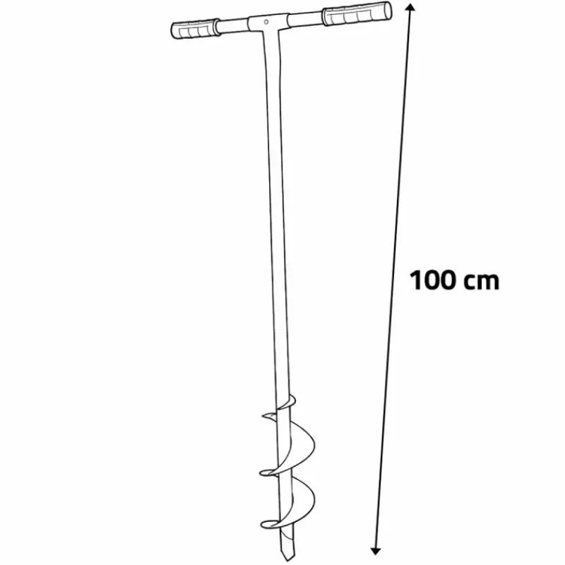 Possède 2 poignées, elle permet de creuser des trous d’une profondeur de 1 mètre, avec un diamètre de 15 cm.