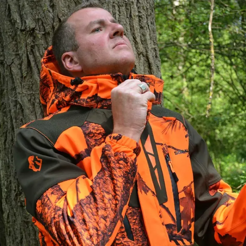 Veste de chasse softshell SL TEX orange camo S à 3XL