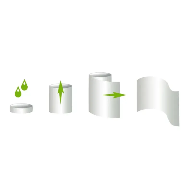 Une fois humidifiées, elles se transforment en une lingette de 25 cm.