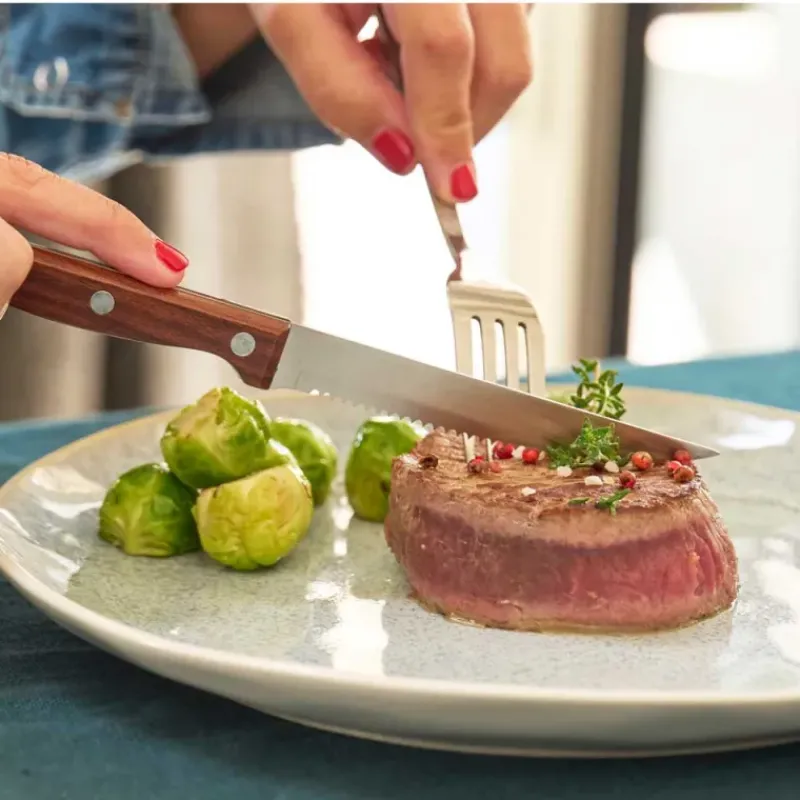 Fabriqués en acier inoxydable 3cr14, ils offrent une résistance à la corrosion exceptionnelle et un tranchant durable, idéal pour découper viandes grillées et pièces de gibier avec précision.