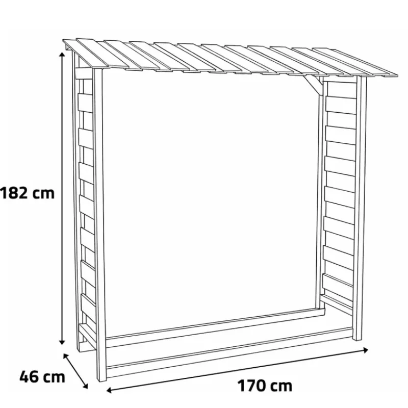 Grâce à ses dimensions généreuses (170 x 46 x 182 cm), ce range-bûches permet de stocker une grande quantité de bois tout en assurant une conservation optimale.