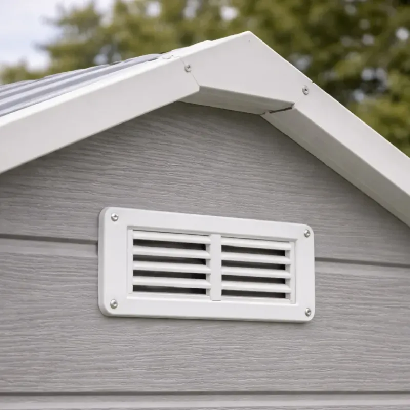 Cet abri de jardin Lys est conçu en plastique haute densité avec des panneaux de 12 mm d’épaisseur, garantissant une excellente résistance aux intempéries et une longue durée de vie. Le cadre de porte, les vantaux et le faîtage sont renforcés par un alliage d’aluminium de 1,2 mm, alliant légèreté et robustesse.