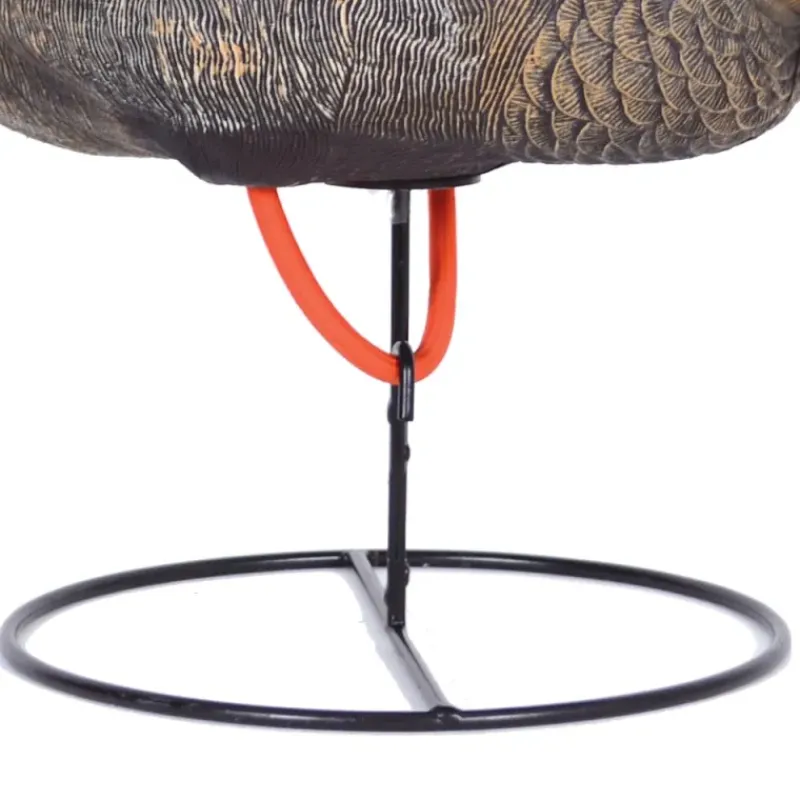Idéal pour la chasse au canard, cet appelant de colvert femelle est livré avec un support en acier à poser au sol et un élastique destiné à arrimer des appelants au socle.