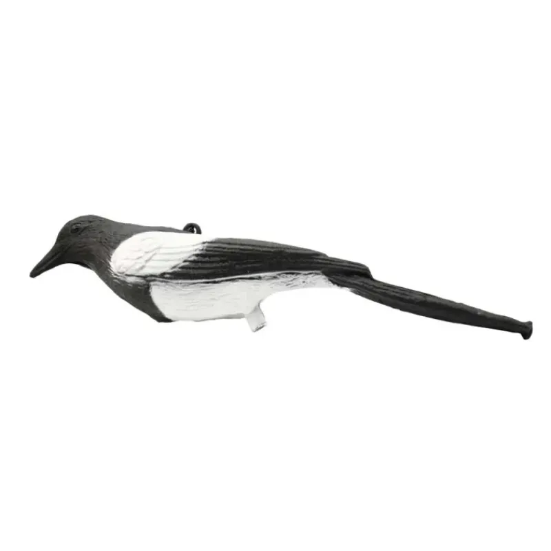 Sa conception soignée reproduit fidèlement l’apparence d’une pie, ce qui en fait un leurre parfait pour attirer ces oiseaux dans les pièges appropriés.