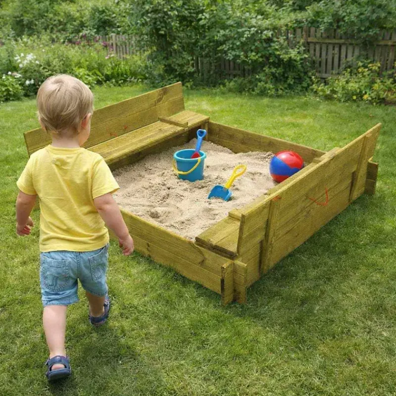 Offrez à vos enfants un espace de jeu sécurisé et ludique avec ce bac à sable en bois avec couvercle ! Un indispensable pour des aventures inoubliables en plein air.