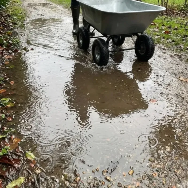 - Capacité XXL : Son grand bac en métal galvanisé peut transporter jusqu’à 75 litres de liquide ou 250 kg de charge solide (sable, bûches, outils, gravats, etc.).