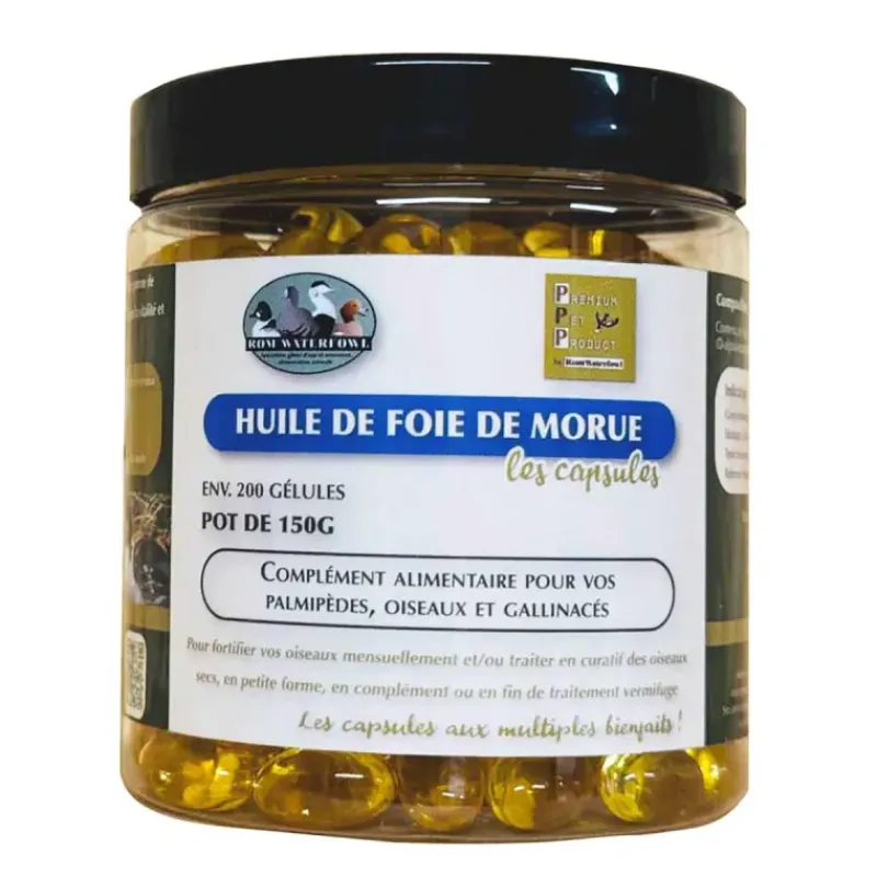 Capsules d’huile de foie de morue pour oiseaux et palmipèdes