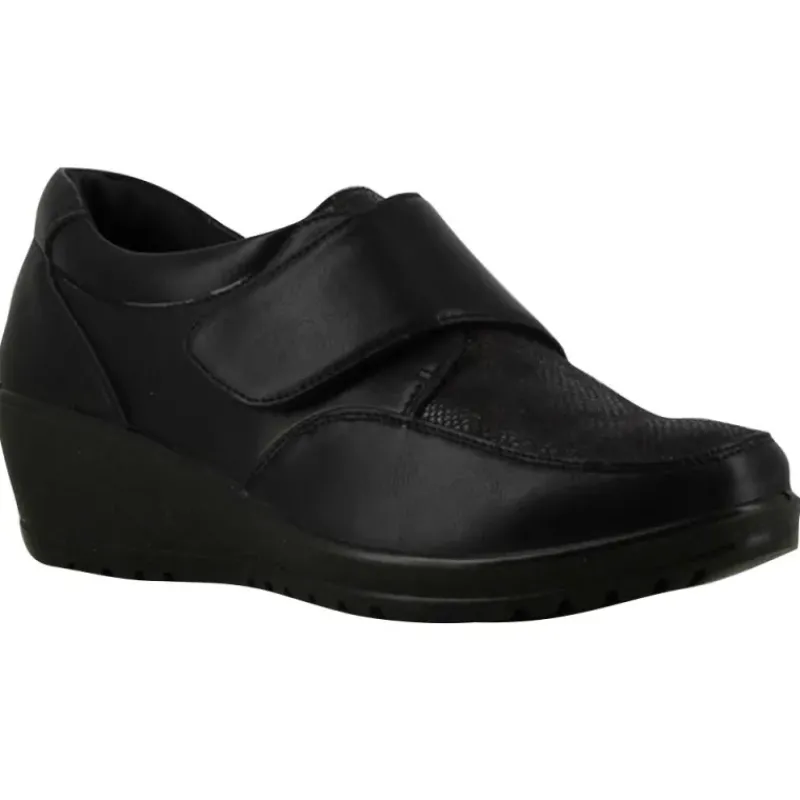 Chaussures scratch noir talon compensé PU – Fermeture pratique