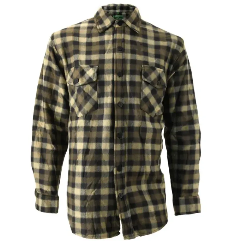 Chemise chasse chaude à carreaux 2 poches polyester kaki M à 3XL