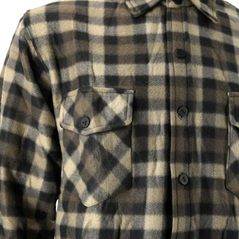 Caractéristiques de la Chemise chaude à carreaux 2 poches polyester kaki M à 3XL :