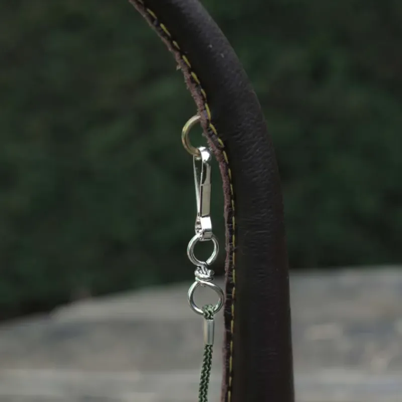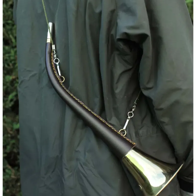 Cette courroie porte-corne est équipée de mousquetons pour assurer une fixation sécurisée.