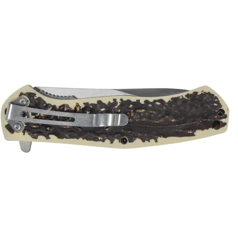 Couteau chasse pliant lame acier inox 9cm manche imitation corne