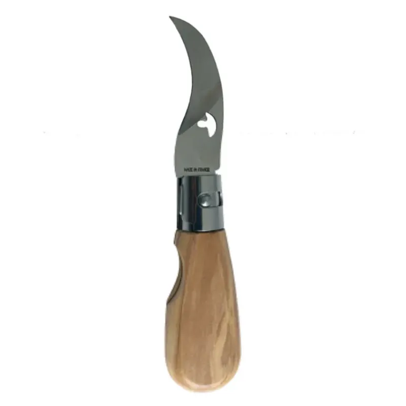 Couteau de poche à champignons lame courbe 15,2cm manche olivier