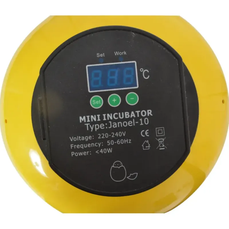 Vous êtes débutant ou vous souhaitez incuber de petites quantités d’oeufs ? Utilisez ce modèle de couveuse, très simple d’utilisation.- Sa coque transparente vous permet de suivre l’incubation. Vos enfants en seront tout émerveillés ! – La résistance de 33W, régulée par un thermostat précis au 1/10° à affichage digital, dispense la chaleur.- Grâce à la présence d’un ventilateur, la chaleur est répartie uniformément. – Les petits bacs à eau situés dans le fond de la couveuse permettent de gérer le taux d’hygrométrie.- Retournement manuel des oeufs-Capacité: 12 oeufs de poule.- Dimensions : Diamètre 24cm et hauteur de 22cm