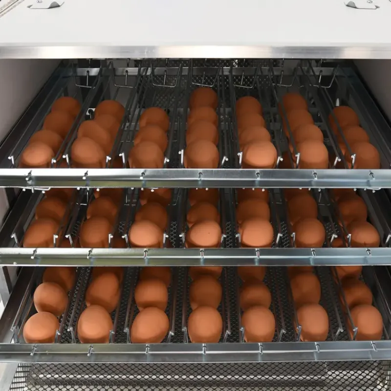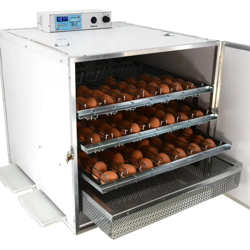 - Tiroirs et panier d’éclosion : Trois tiroirs basculants en métal standard adaptés aux oeufs de caille à poule, complétés par un panier d’éclosion amovible pour 53 oeufs. Des tiroirs spécifiques pour oeufs plus grands (oie, paon, dinde géante) sont disponibles en option.