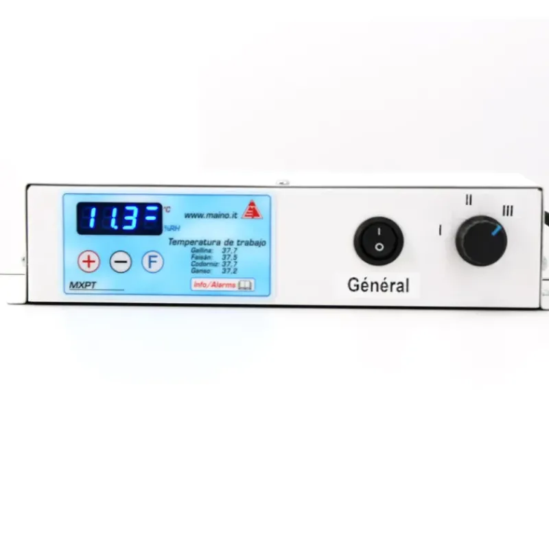 - Contrôleur PID : Gestion intelligente et précise des conditions d’incubation grâce à un capteur numérique de température et d’humidité avec alarmes.