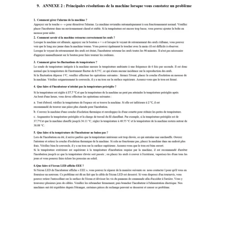 - Incubation homogène et stable : Conditions optimales garanties pour un taux d’éclosion élevé.