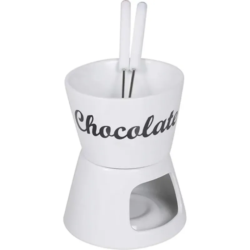 Caractéristiques Fondue chocolat porcelaine 12x12x15cm avec 2 fourchettes inox :