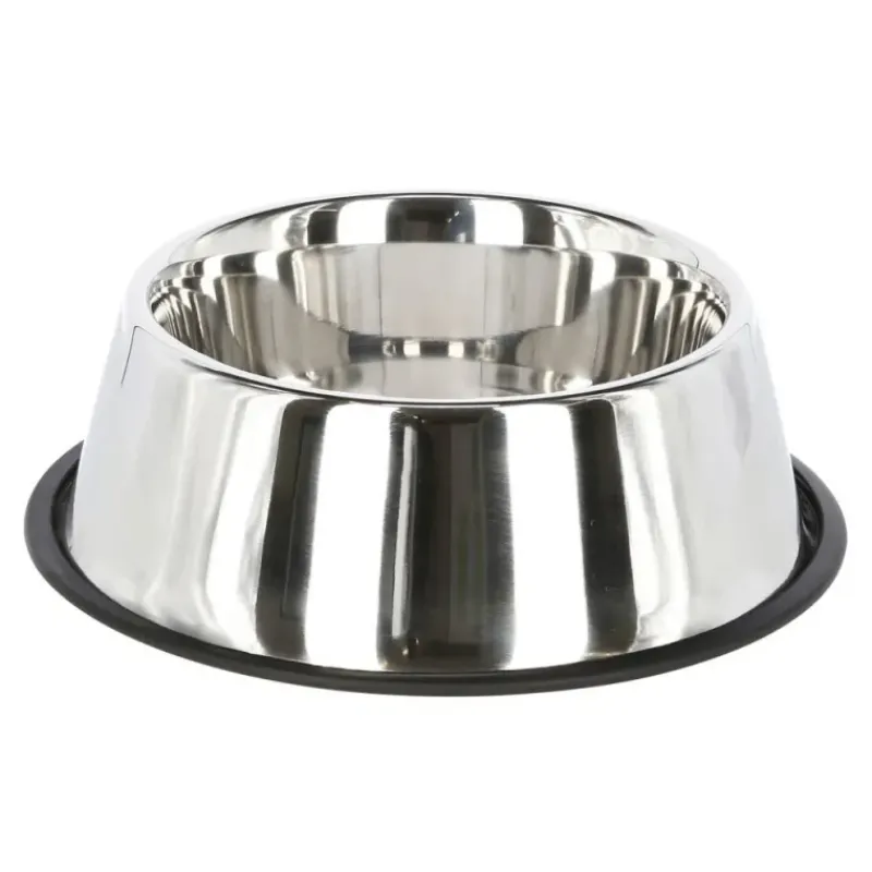 Gamelle en acier inoxydable avec socle antidérapant.