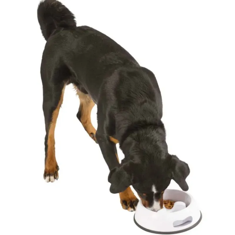 Gamelle conçue pour empêcher l’animal de manger et de boire trop rapidement.