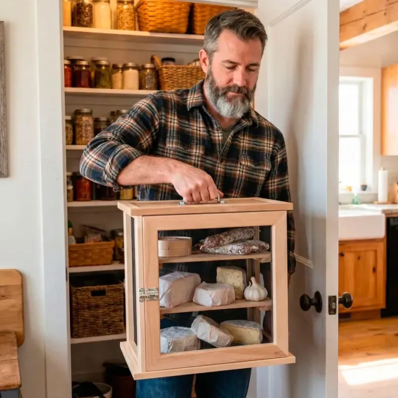 Ce garde-manger vous permettra de stocker vos légumes, saucissons, charcuteries, fruits, fromages, à l’abri de la lumière et des insectes.