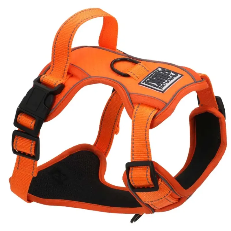 Il est équipé de 2 points d’attache pour la laisse : un point classique pour la promenade et un second à l’avant pour les chiens qui tirent, utile dans une démarche de dressage ou d’éducation anti-traction. Une poignée dorsale vient compléter l’équipement pour une prise en main sécurisée en toutes circonstances.