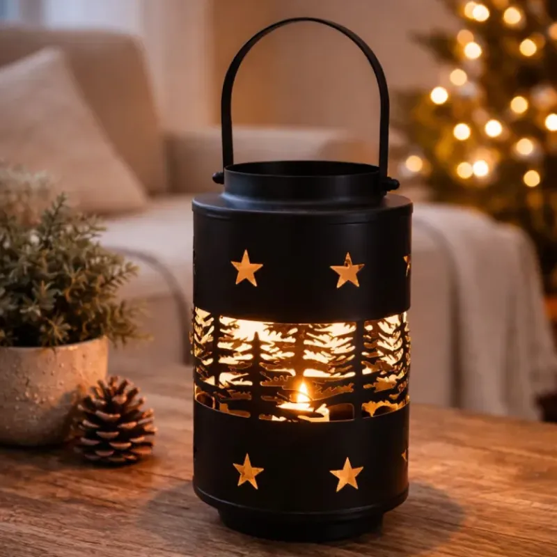 Lanterne fer noir 14,5×12,5x20cm poignée intégrée 350g