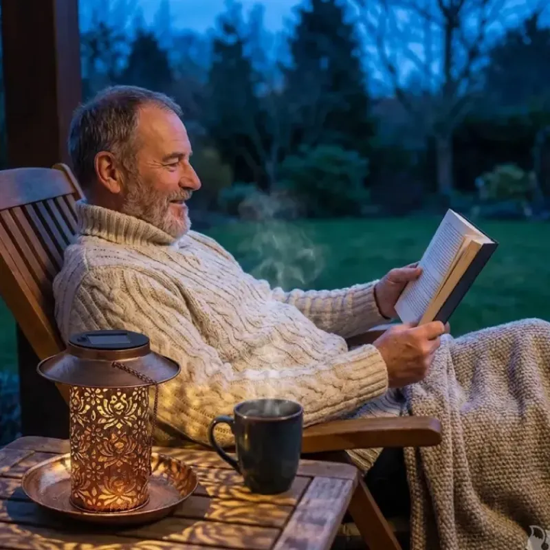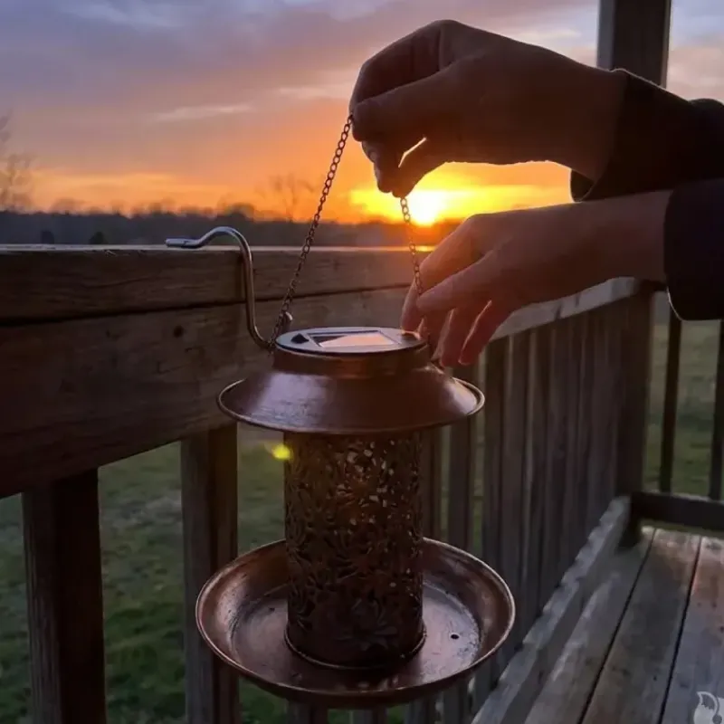 Facile à installer en hauteur grâce à une chaîne et un crochet, cette lanterne solaire s’illumine automatiquement dès que la nuit tombe.