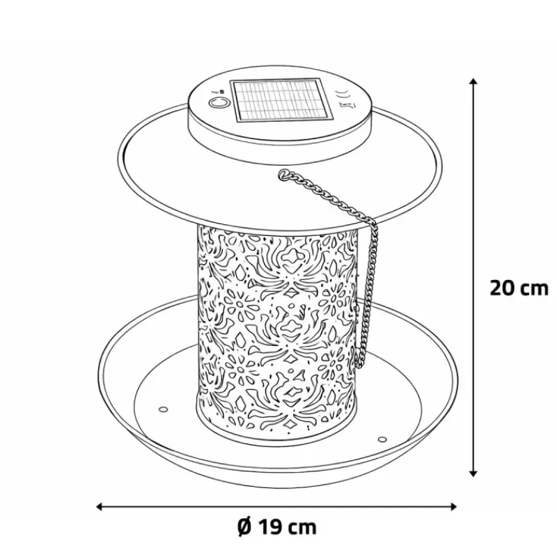 - dimensions : Ø 19 x 20 cm / panneau solaire : 5 x 5 cm