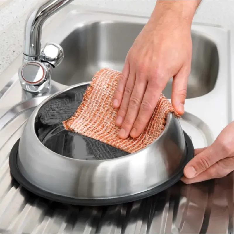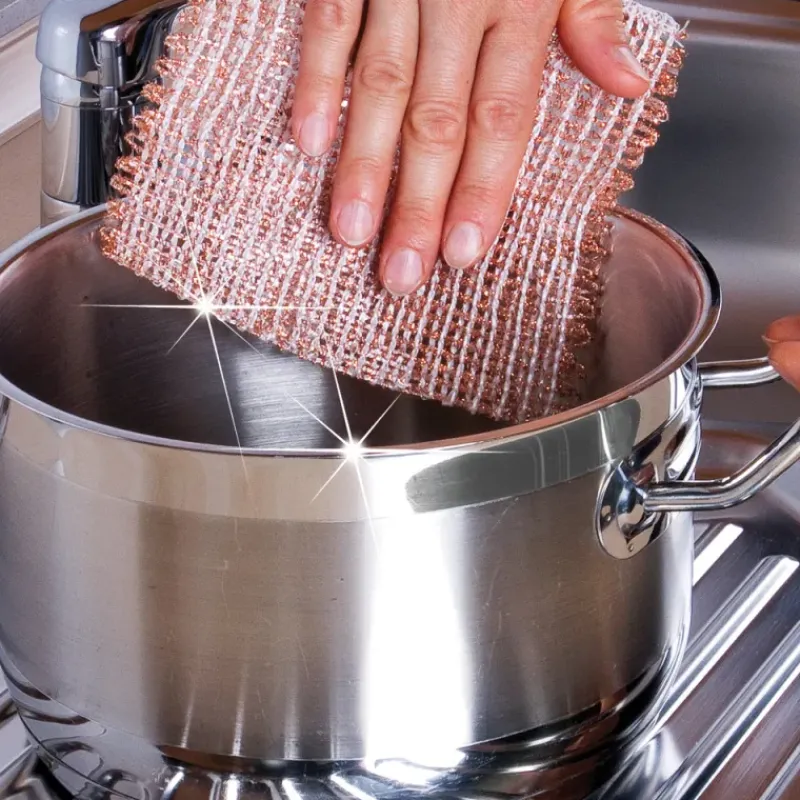 La lavette en cuivre double couche enlève même la saleté la plus tenace, comme, par exemple, les aliments brûlés.