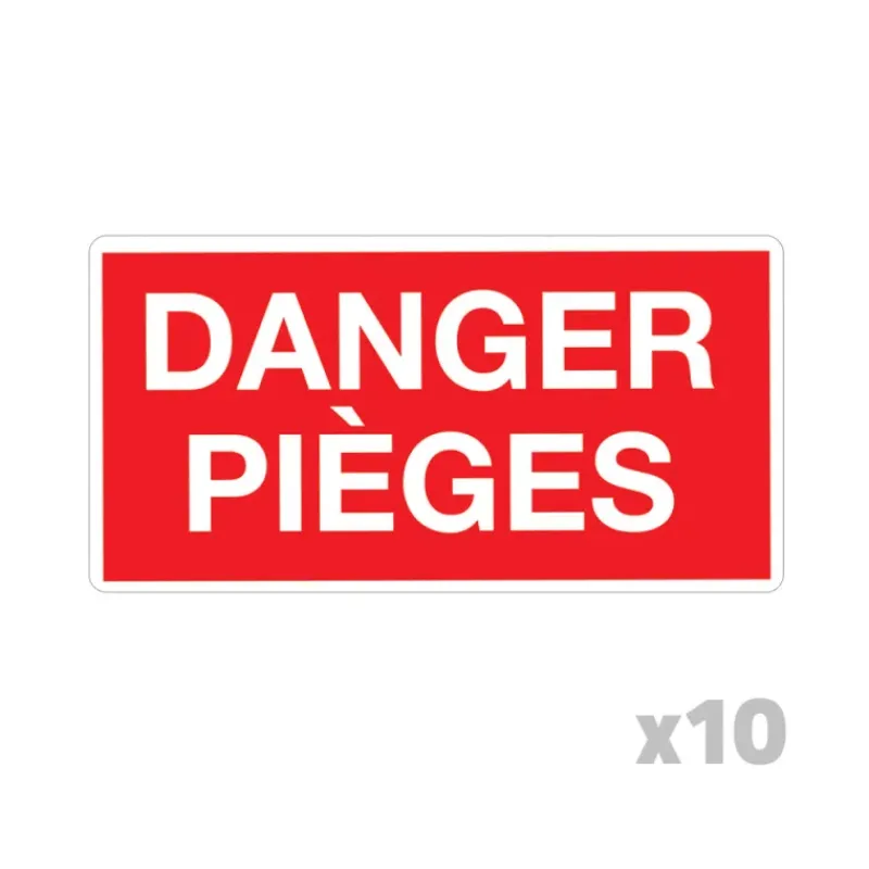Lot de 10 Panneaux DANGER PIÈGES Akilux 26x20cm