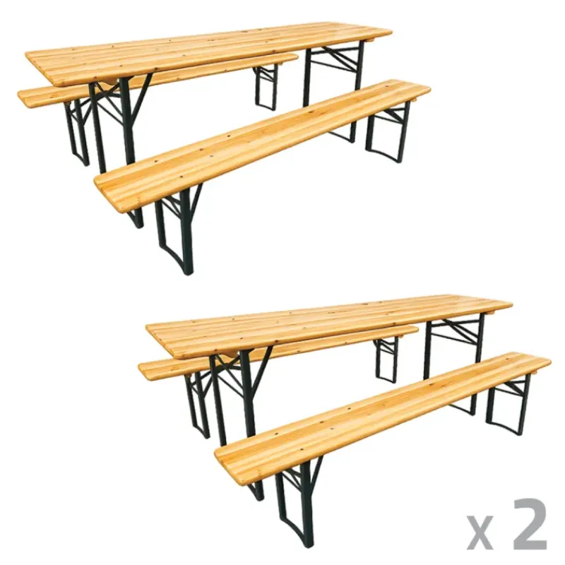 2 Tables Extérieure en Pin Massif 177 X 46 cm avec 4 Bancs bois 177 cm Bois / Métal Robustesse – Rangement et stockage facile