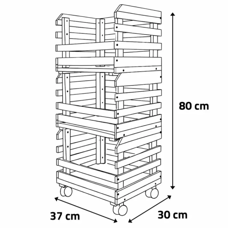 Avec des dimensions de 37 cm de largeur, 30 cm de profondeur et 80 cm de hauteur, ces caisses offrent un volume généreux pour ranger une grande quantité de fruits et légumes. Leur format vertical permet un gain de place tout en facilitant l’accès à vos provisions.