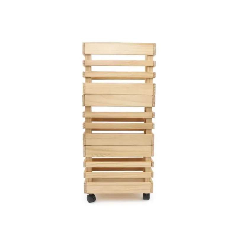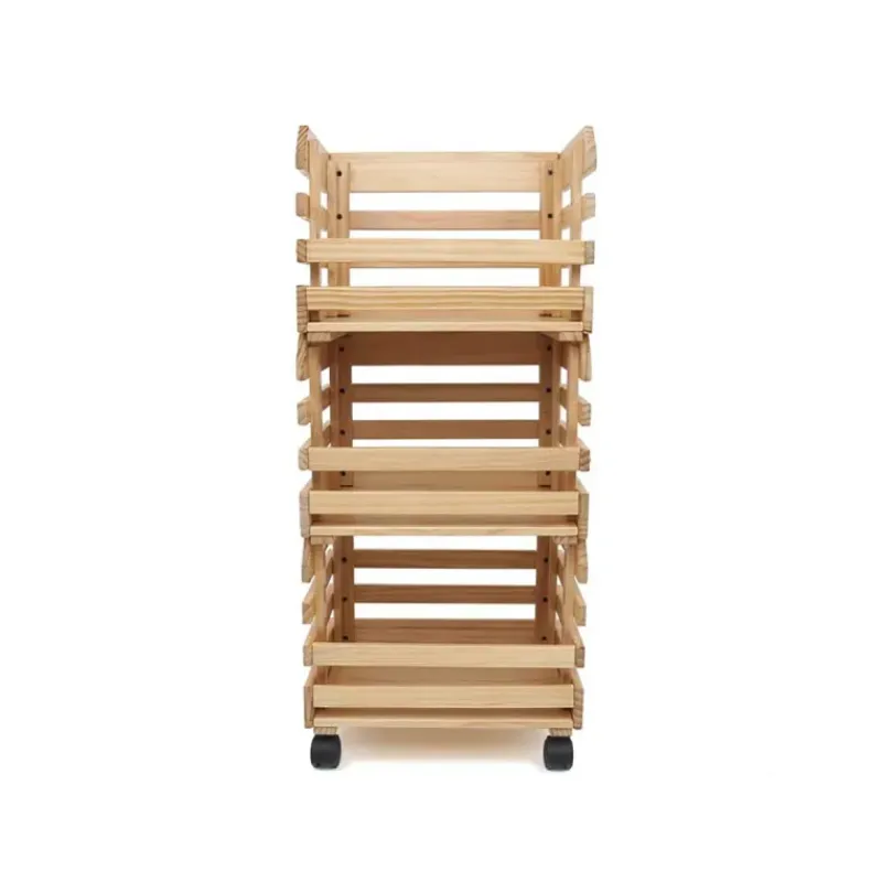 Lot de 3 caisses à fruits et légumes mobiles en bois de pin