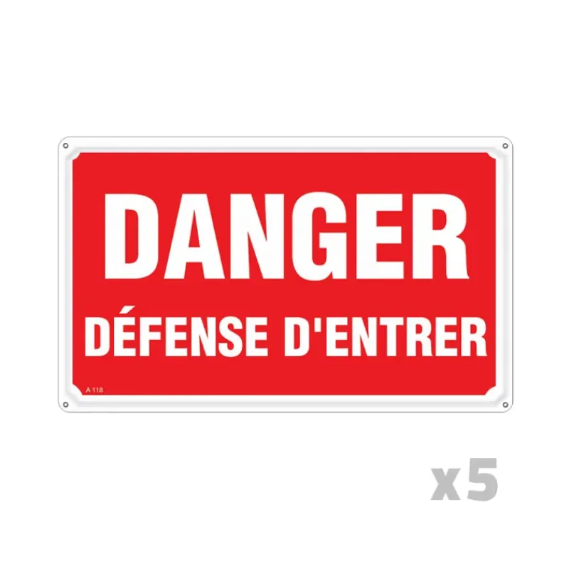 Lot de 5 Panneaux DANGER DÉFENSE D’ENTRER Alu 30X20cm