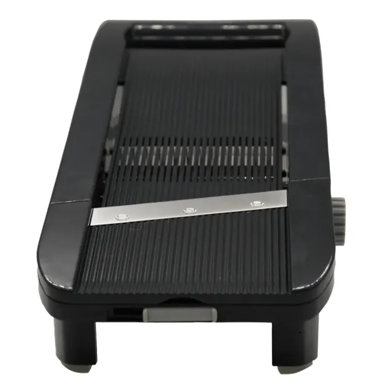 Cette mandoline possède une large poignée et un bouton poussoir pour un meilleur confort et une sécurité optimale.
