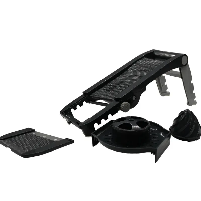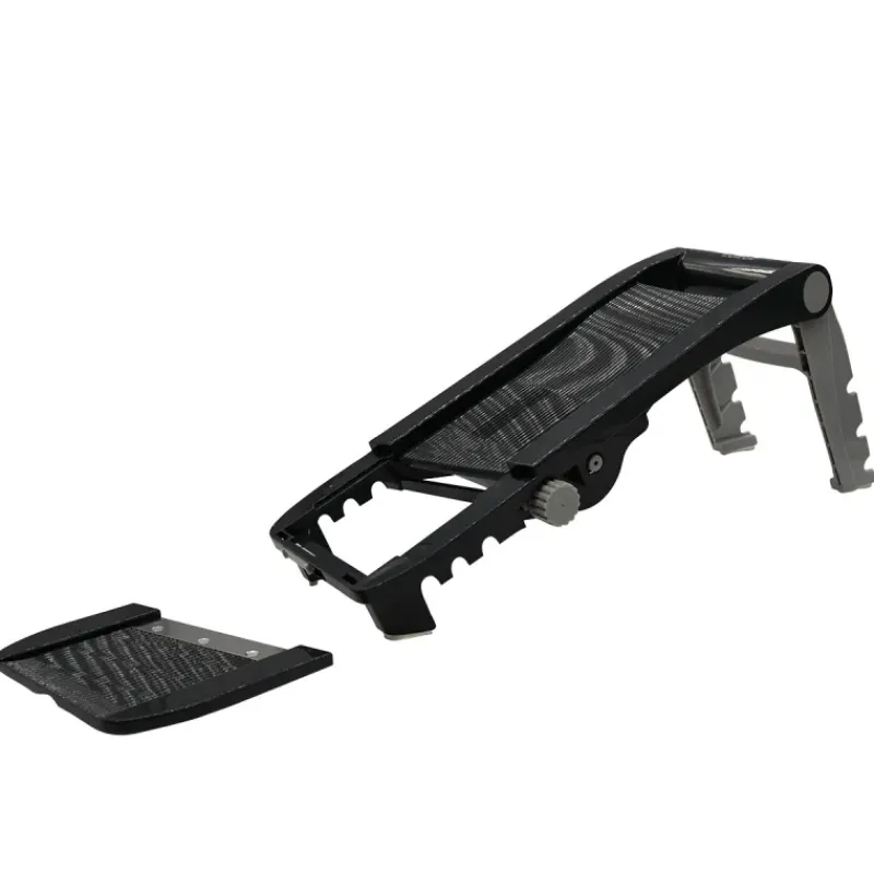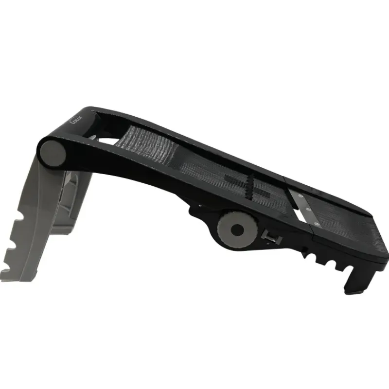 Cette mandoline peut être utilisée sur pieds repliables et anti-dérapants ou à plat sur un saladier (avec pieds repliés).