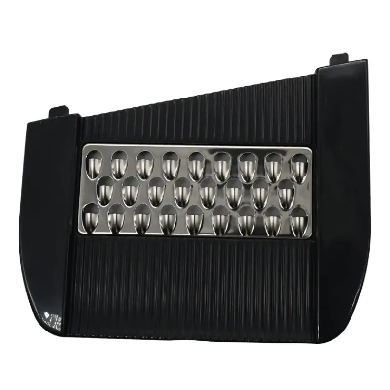 3 râpes avec des trous de diamètre 2,5 mm, 6 mm ou râpe à fromage ou chocolat.