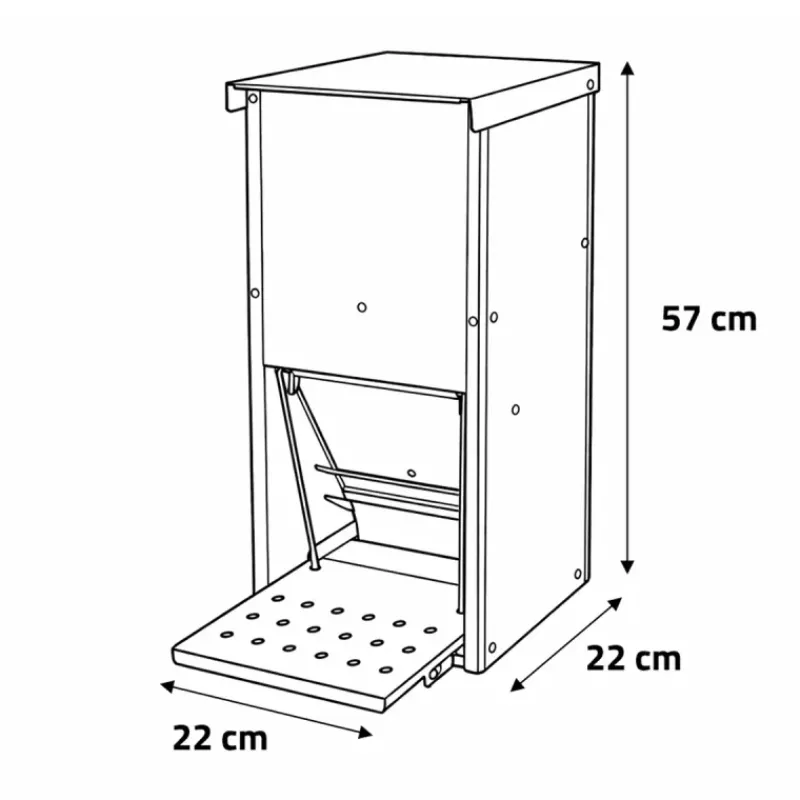 L’ouverture automatique de la trémie se fait par simple pression lorsque la volaille se présente devant la mangeoire.