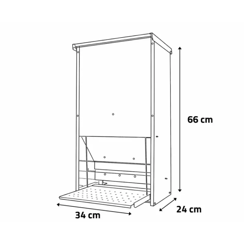 - Dim. : 34 x 24 x 66 (h) pour la mangeoire 23 kg