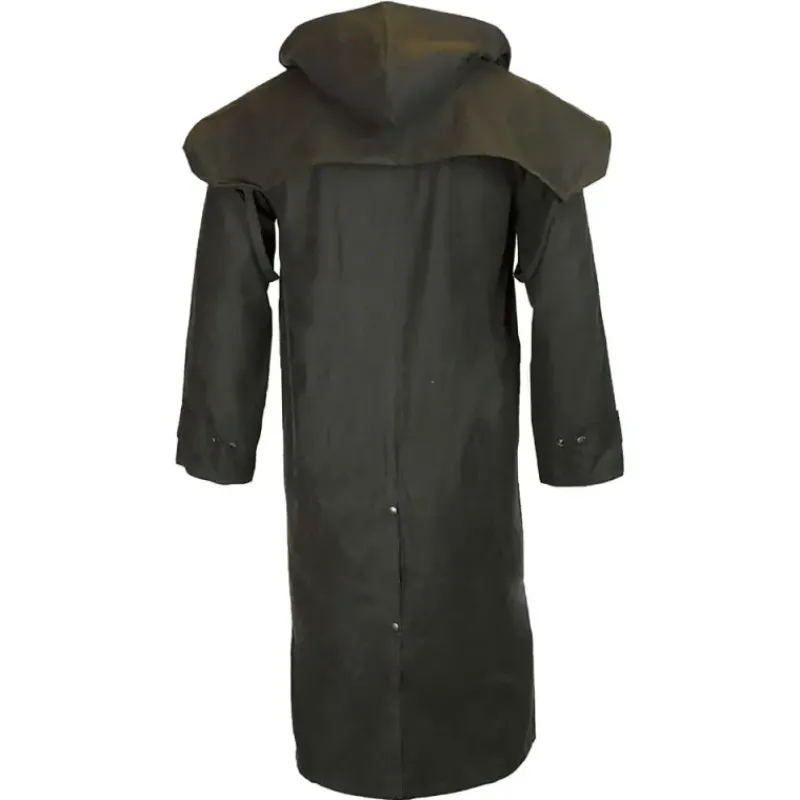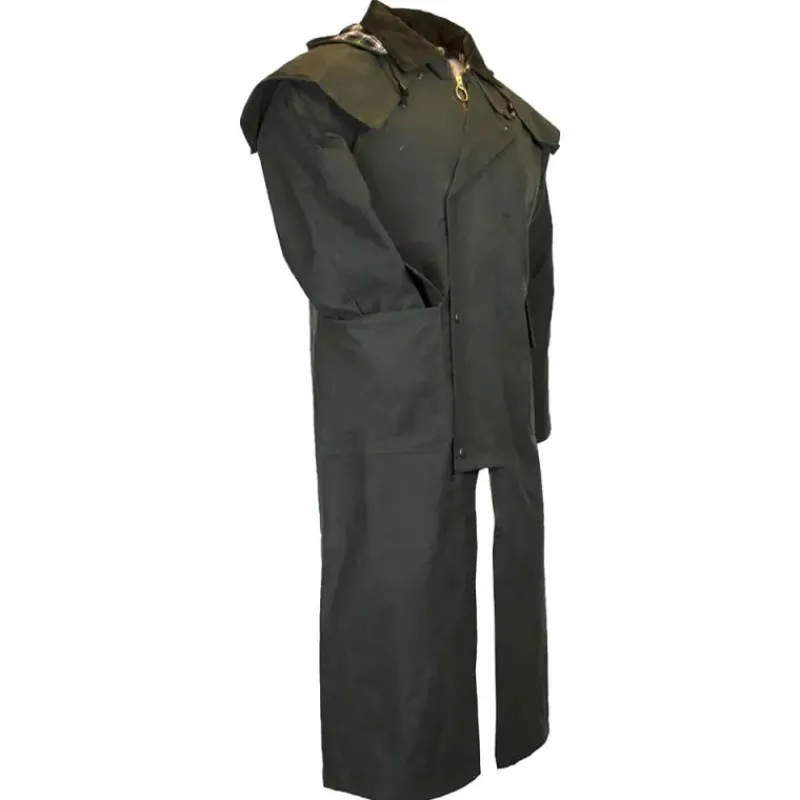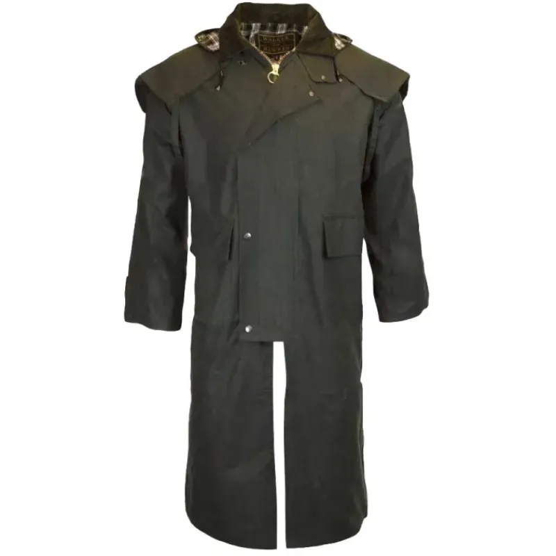 Manteau long Walker and Hawkes Waxstock Vert Coton Ciré Épais Capuche Ajustable