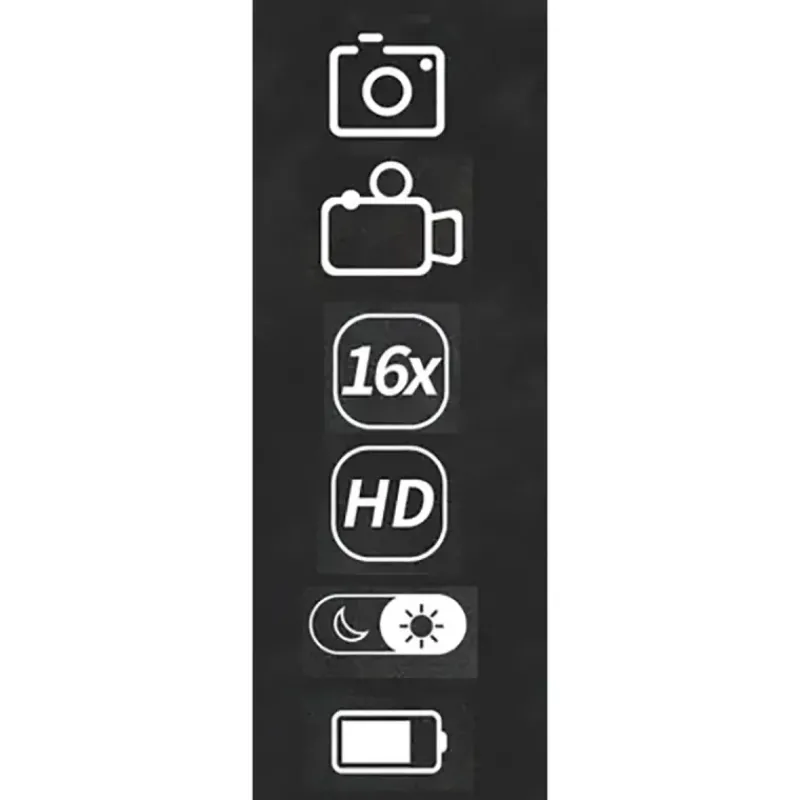 Le zoom numérique x16 vous permet de rapprocher les sujets éloignés sans vous déplacer. Parfait pour observer la faune sauvage ou surveiller un périmètre en toute discrétion.