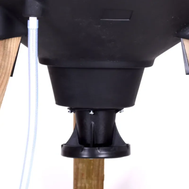 Équipé d’un système unique de drainage permettant de garder les grains au sec avec la possibilité de collecter les eaux de pluie dans un abreuvoir grâce au tuyau fourni.