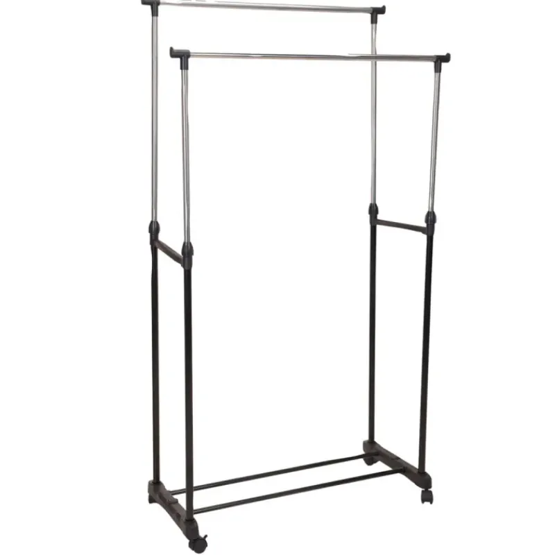 Ce porte-vêtements est équipé de deux barres renforcées en acier inoxydable, garantissant une excellente résistance et durabilité. Idéal pour suspendre vos vêtements, il supporte une charge maximale de 15 kg.
