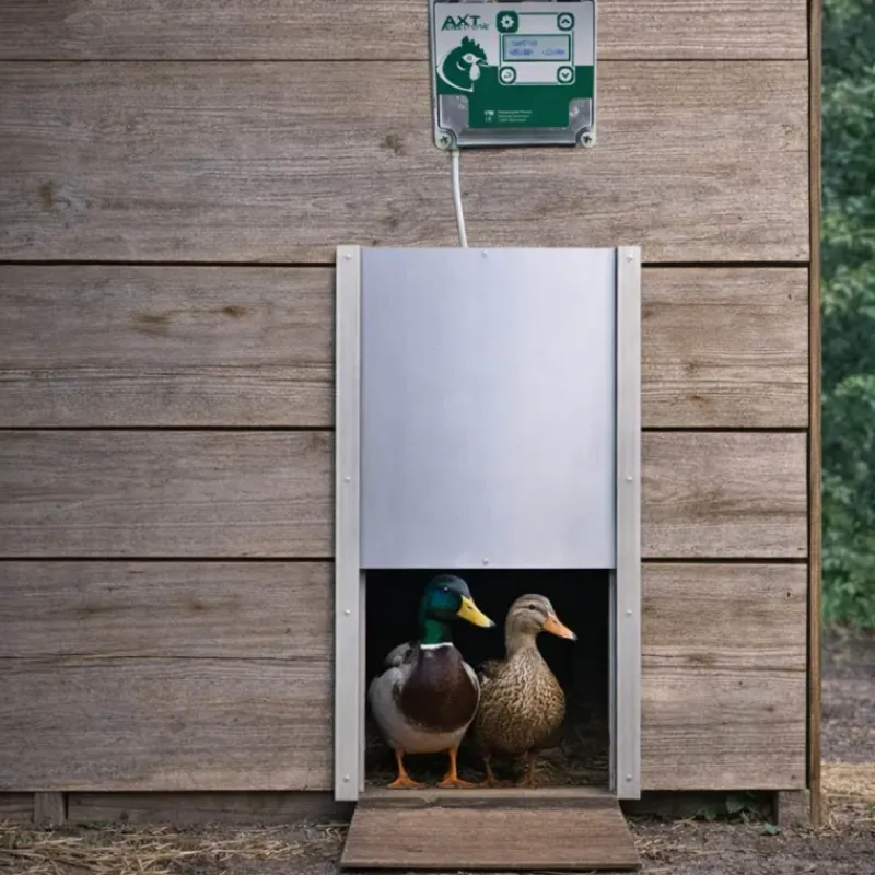 Ce kit comprend le portier électronique à horloge + la trappe et ses glissières dimensionnées pour le passage des canards.
