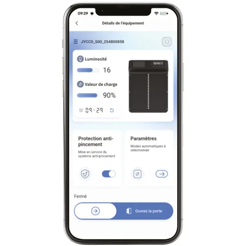 Système anti-pincement intelligent : la porte se relève automatiquement en cas d’obstacle.