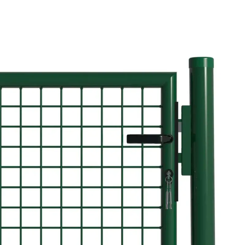 Portillon robuste en acier grillagé, idéal pour délimiter et sécuriser vos espaces extérieurs. Dimensions : 1 x 1 mètre, avec une maille carrée de 50 x 50 mm et un fil d’acier de Ø 4 mm pour une résistance optimale.