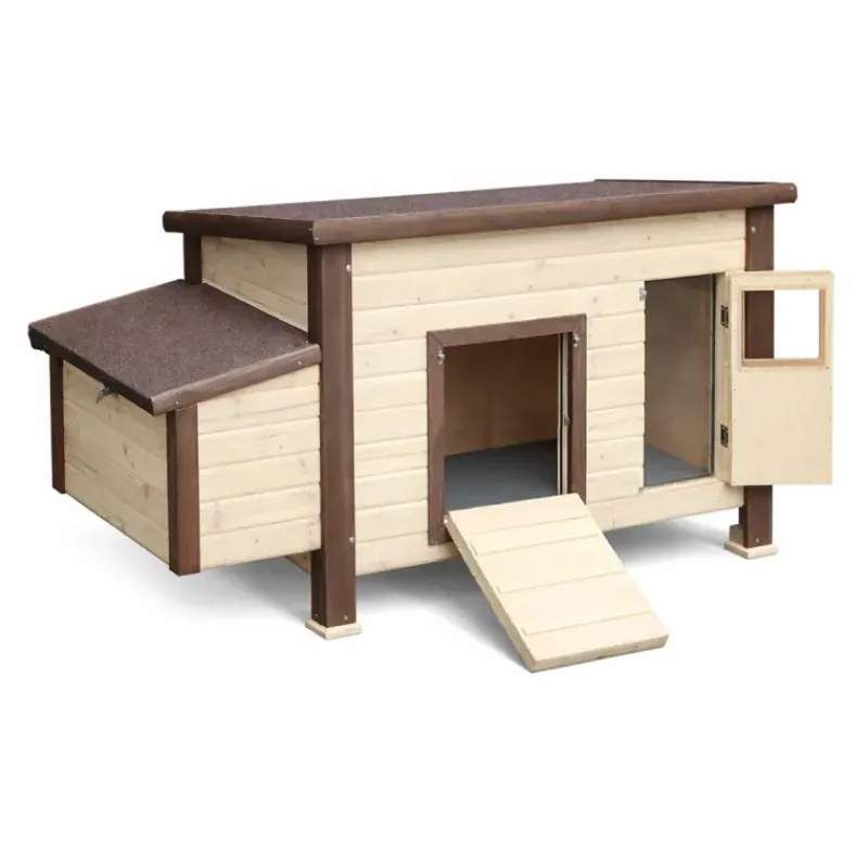 - Le toit bitumé rabattable facilite le nettoyage et le changement de litière.