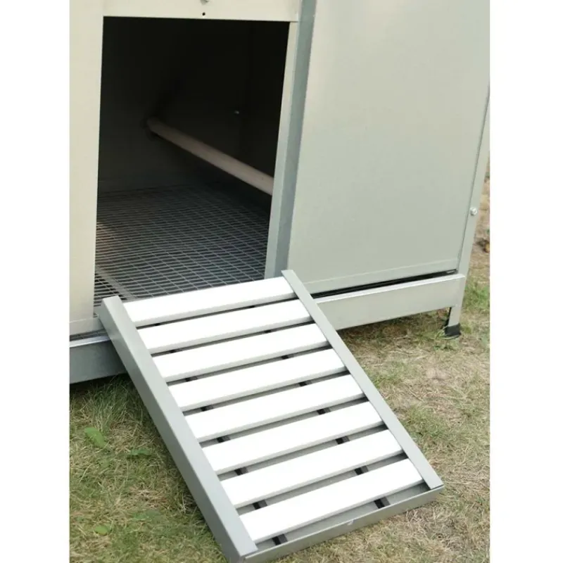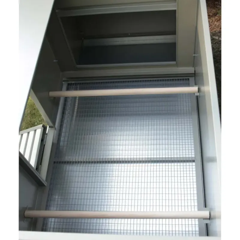 Il est conçu pour un nettoyage parfait et très aisé : la grille du sol permet l’ouverture du tiroir sans déranger les poules.