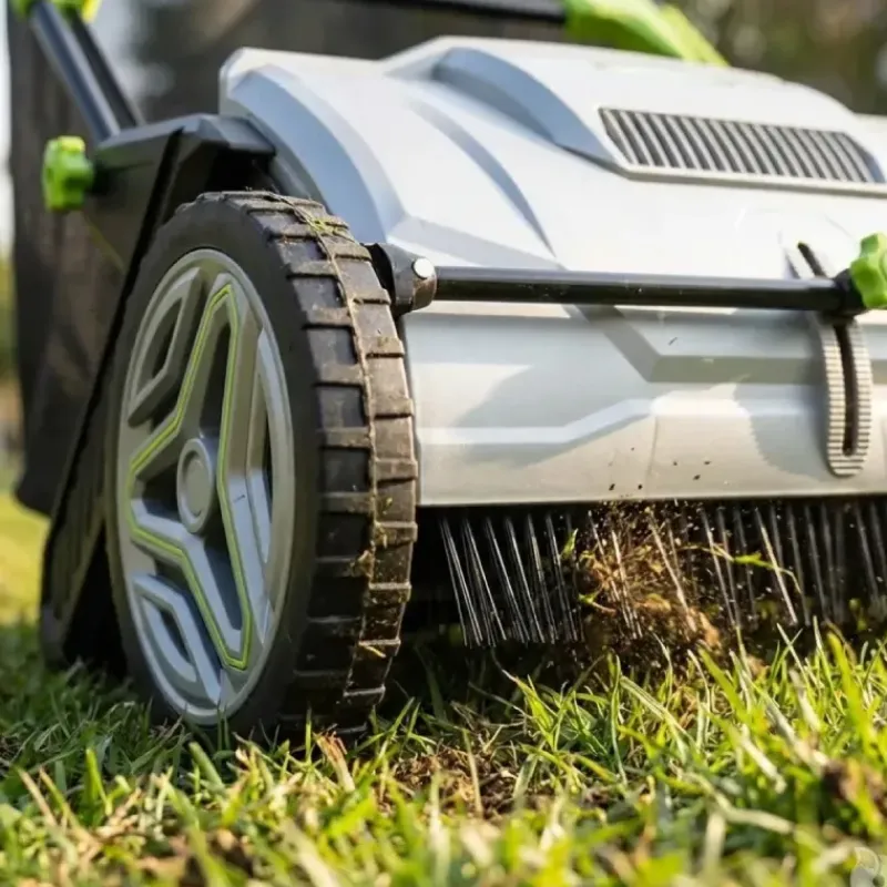 Le réglage central de hauteur, ajustable de 0 à 40 mm, s’adapte parfaitement à tous types de sols et de débris végétaux.